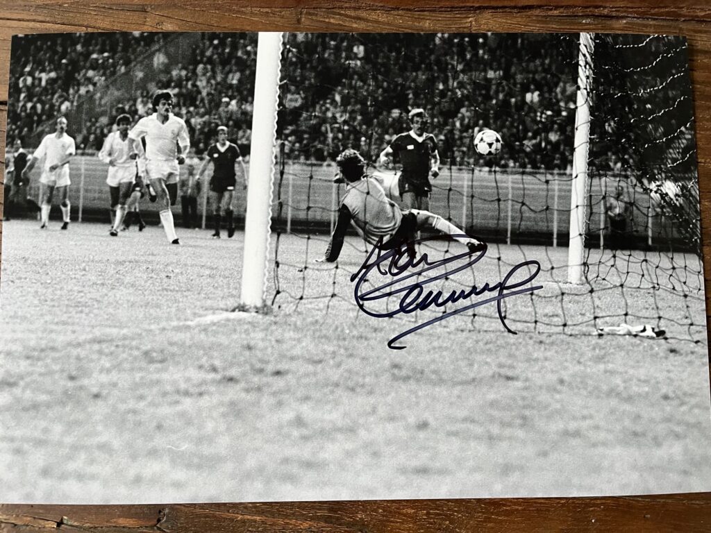 Genstand 3: Signeret billede af Alan Kennedy. Alan Kennedys afgørende scoring Mesterholdsfinalen 1981