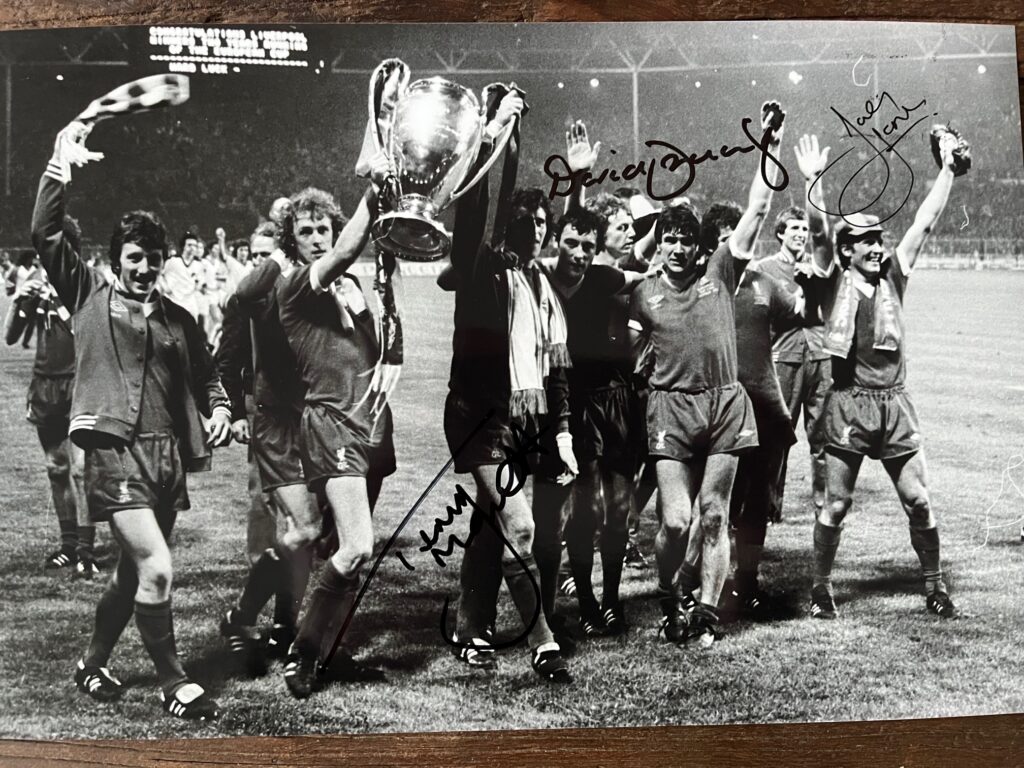 Genstand 6: Billede. Mesterholdsfinalen 1978 signeret af David Fairclough, Terry McDermott og Joey Jones