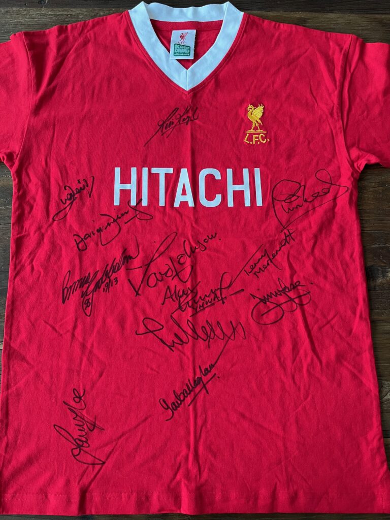 Genstand 7: Signeret trøje: Signeret af Kevin Keegan, John Aldridge, Phil Neal, David Fairclough, Bruce Grobbelaar, David Johnson, Terry McDermott, Alan Kennedy, Jimmy Case, Sammy Lee, Ian Callaghan og Jan Mølby. Str. L