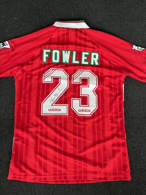 Genstand 2: Trøje signeret af Robbie Fowler uden mærke – ligner XL